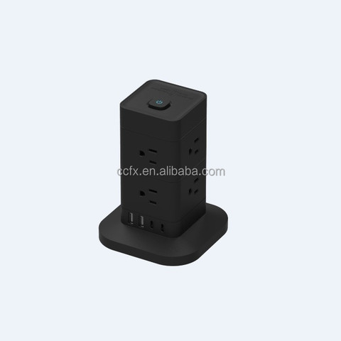 Colore nero Torre di Potenza Presa di Corrente Con Il USB di Controllo, Torre di Potenza Striscia con 4 USB 5V 3.4A