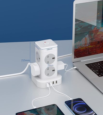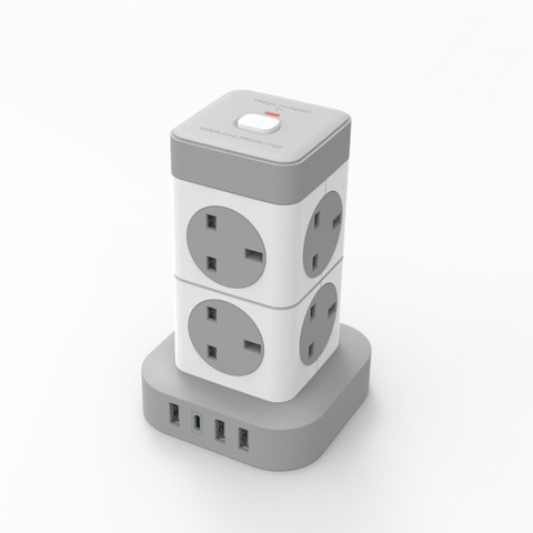 Prese di prolunga Multi spina UK con USB, ciabatta Power Tower con 4 USB 5V 3.4A