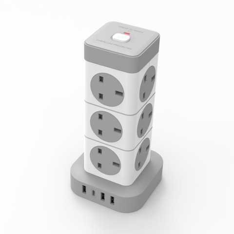 Multi Presa Torre di Estensione UK Striscia con 3 porte USB di ricarica e un Tipo-C porta 5V 3.4A